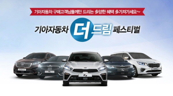 기아차는 전 차종 구매고객을 대상으로 5가지 테마의 상품들을 최대 60% 할인된 가격으로 구매할 기회를 제공하는 ‘더-드림(The-Dream) 페스티벌’을 시행한다고 31일 밝혔다.