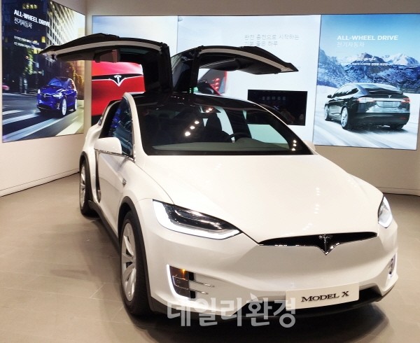 테슬라코리아가 17일 서울 강남구 청담동 매장에서 중형 SUV 모델 X를 국내 공개했다.