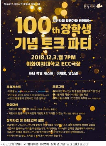 환경재단은 이에 맞춰 내달 3일 오후 6시 30분 이화여대 ECC극장에서 ‘시민사회의 혁신’을 주제로 토크콘서트를 개최한다.