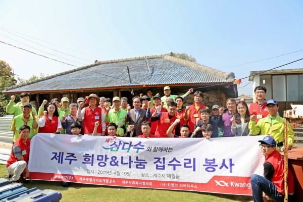 광동제약(대표이사 최성원)은 제주특별자치도개발공사(사장 오경수), (사)희망의 러브하우스(대표 양덕근)와 공동으로 지난 19~20일 양일간 제주도를 방문해 ‘제주삼다수와 함께 하는 제주 희망&나눔 집수리 봉사’를 펼쳤다고 최근 밝혔다.