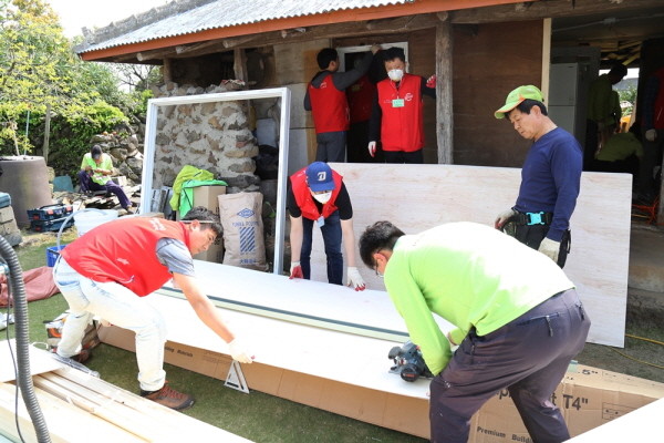 광동제약 임직원과 제주특별자치도개발공사 직원, (사)희망의 러브하우스 자원활동가 등 총 40여명으로 구성된 봉사단은 주택 전반의 보수 공사를 실시했다. 이들은 나무로 된 출입문과 창문을 모두 새시로 교체하고, 마당에 있던 화장실과 조리시설을 실내로 이전해 어르신이 보다 안전하게 생활할 수 있도록 했다. 또한 오래된 벽지와 장판 등을 새로 바꿔 쾌적한 주거 환경을 만들었다.