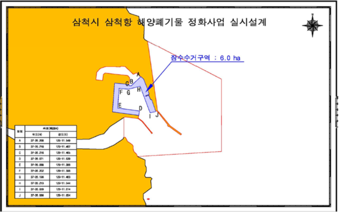 지난해 11월 공단은 삼척항에 대한 실시설계 용역을 추진하였으며, 그 결과, 항 내 접안시설을 중심으로 6ha의 면적에 폐타이어를 비롯한 약 50톤의 침적쓰레기가 확인됐다. 공단은 5월부터 잠수부 등을 투입하여 약 30일 간 수거 작업을 수행할 계획이다