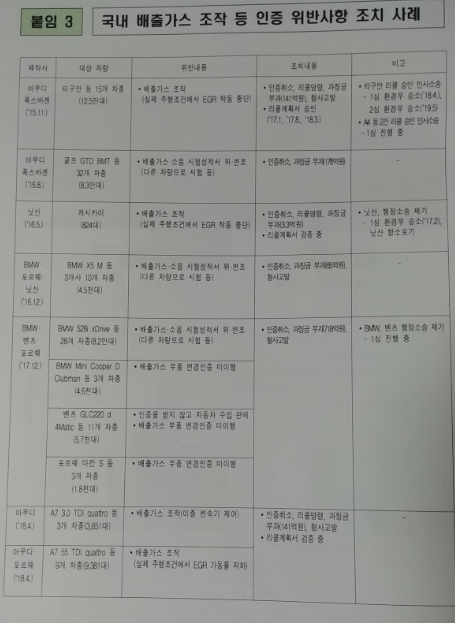 이어 “이들 차량은 실제 주행 시 질소산화물 저감 장치 EGR 기능을 낮추거나 멈추는 배출가스 불법 조작이 임의로 설정되어 있었다”면서 “이러한 방식의 임의 설정은 과거 폭스바겐 경유차 15개 차종 (2015년11월) 닛산 경유차 캐시카이 (2016년 6월) 아우디폭스바겐 및 포르쉐경유차 14개 차종(2018년 4월 )과 유사한 방식”이라고 덧붙였다.