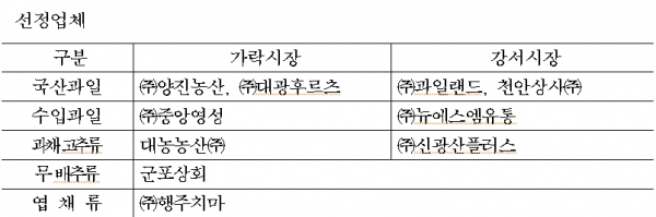 서울시농수산식품공사(사장 김경호) 친환경유통센터(이하 ‘센터’)는 2019년 학교급식 일반농산물 공급업체로 강서시장 시장도매인인 천안상사(주) 등 10개 업체를 선정하였다.