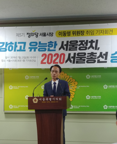 이동영 정의당 서울시당 신임위원장은 이날 기자회견에서 서울시정에 대한 입장과 대안, 2020서울총선에 대한 방향과 계획을 밝혔다. 우선 , 정당정치의 복원을 통해 서울시정의 대표성과 책임성을 분명히 할 것을 언급했다. 화려한 서울시정에 가려진 보이지 않는 노동에 대해, 노동 밖의 노동과 손을 잡아야 한다고 강조하였다. 특히 여성·청년 1인가구의 사회경제적 문제, 공공기관 간접고용의 문제 등 서울의 특성을 반영한 사회, 경제, 노동의 문제에 대한 대안 마련을 위해 서울시와 의회, 정당과 노사, 다원적 결사체가 참여하는 사회적 대화기구로서 ‘서울형 경제사회노동위원회’를 박원순 시장에게 공개 제안했다.