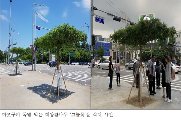 아울러, 마포구는 500만 그루 나무심기 사업의 실질적인 원년의 해를 맞이하여 올해 전국 최초 '파고라형 그늘목'을 식재했다. 그간 교통섬과 횡단보도에 자원 소모적이고 관리에 노동력이 많이 소모되는 그늘막 대신, 친환경 소재인 수목을 이용한 그늘목을 식재해 주민에게 큰 호응을 받았다. 앞으로 2022년까지 30여개소로 확대해 여름철 폭염 속에서 횡단보도를 건너는 주민에게 잠시나마 시원한 그늘을 제공할 예정이다.