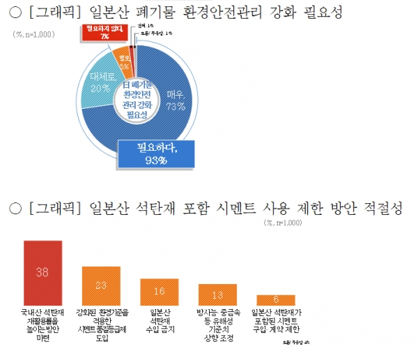 일본산 석탄재 수입 규제 검토에 대해서도 긍정 여론이 높았다.