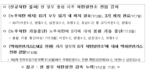 석탄의 온실가스 배출이 증가한 이유는 현 정부에서 추진한 노후석탄 조기폐지정책에 따라 2017년 일부설비가 폐지1)되었음에도 불구하고 이전 정부에서 허가받았던 설비가 신규 설치2)된 것이 주요원인으로 분석된다.