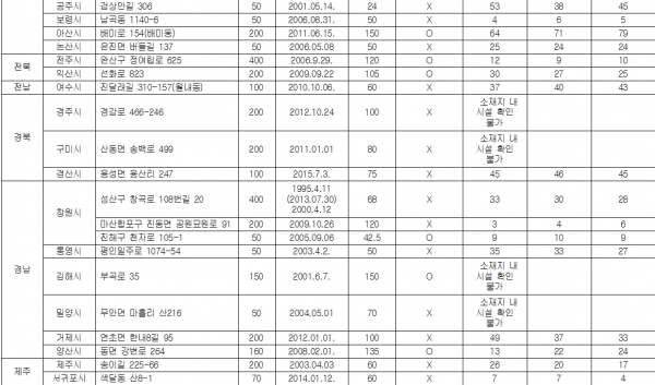 이 가운데 절반 가까운 30곳은 간접영향권인 300m 이내에 주거지가 있는 것으로 나타났다.