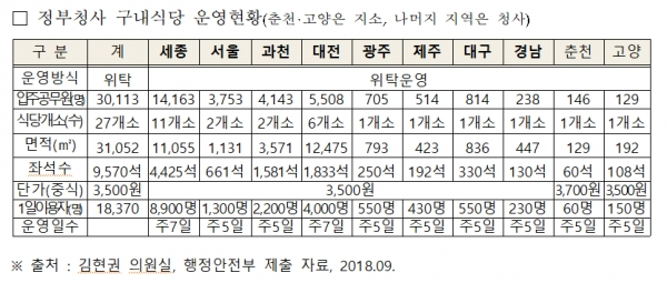 또 “직영체계로 구내식당을 운영하지 않으면 사실상 식재료의 원산지를 관리할 수 없는 실정”이라며 “구내식당 운영을 위탁한 경우, 외국산 축산물을 쓴다면서도 국산 90%이상이라고 표기한 것은 신빙성이 떨어진다”고 지적했다.
