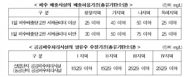 공공폐수처리시설 방류수 수질기준 및 수질오염물질 배출허용기준에 총유기탄소량 기준을 설정