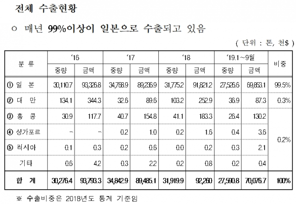 또한, 수출선과장(저온창고, 재배온실 포함) 등을 중국 측에 통보(19개 수출단지, 226농가, ’19.10.23)하고, 중국 검역당국의 최종 승인을 받기 위해 협의 중에 있다고 밝혔다.