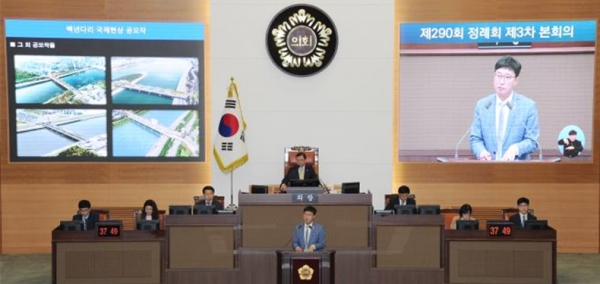 서울시의회 도시안전건설위원회에서 의정활동을 하고 있는 문장길의원(더불어민주당, 강서2)은 지난 19일(화) 제290회 정례회 제3차 본회의에서 박원순 서울시장을 상대로 성급하게 추진되고 있는 백년다리 건설과 8년간 결단 없이 흘러가고 있는 신곡수중보 철거문제에 대해 시정질문 했다.