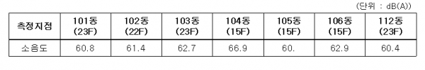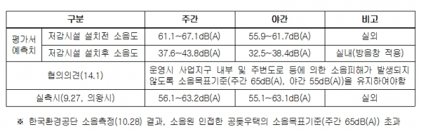 지난 달 14일부터 15일까지 7개 동의 야간 소음을 측정한 결과도 환경기준 55dB(A)를 초과한 60.8dB(A)~66.9dB(A)로 확인돼 환경영향평가서에 약속한 소음방지대책을 사업자가 이행하지 않은 것으로 확인됐다.