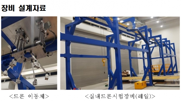 재단에서는 지금까지 종합시험 기준에 적합한 농업용 드론의 규격 등을 조사한 자료를 기초로 실내에서 실외 비행과 동일한 비행이 가능하게 하기 위해 드론 부착이 가능한 이동체와 레일 등으로 구성된 시스템을 설계·제작하여 구축하게 되었다.