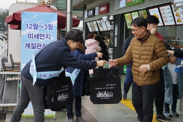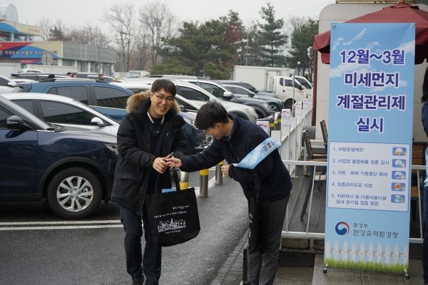 한강유역환경청은 지난 24일 동서울터미널, 26일 이마트 명일점, 30일 하남드림휴게소를 이용하는 시민들에게 ‘대중교통 이용 함께해요’라는 문구가 새겨진 에코백과 미세먼지 관련 홍보물을 나눠주며 미세먼지 계절관리제를 설명하였고, 1월까지 이 캠페인을 계속한다는 계획이다.