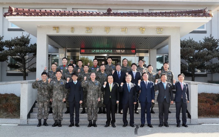 문희상 국회의장은 30일 “제8전투비행단은 지리적으로 대한민국 최선봉에 서있는 매우 중요한 비행단이며, 예하 237 전투비행대대의 16만 시간 무사고는 공군 전체 최장기간으로 여타 부대의 귀감이 되고 있다”면서 “올해는 6·25전쟁 70년이다. 전쟁 폐허에서 우뚝 일어나 ‘Made in KOREA’ 제8전투비행단을 방문하니 가슴이 벅차고 감개무량하다”고 말했다.