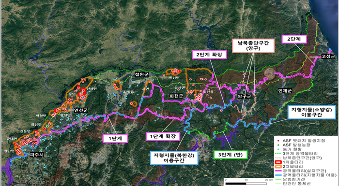 또한 멧돼지 행동반경을 축소하기 위해 기존 1단계 광역울타리 내 4개 시·군(파주·연천·철원·화천)에 7개 울타리를 설치하고, 총 10개 권역으로 구획화하여 관리를 강화할 계획이다.