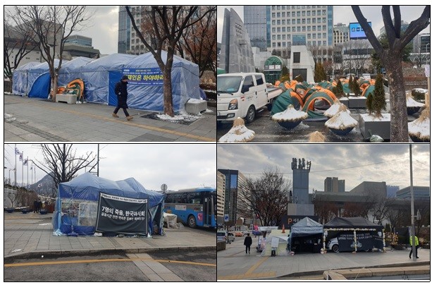 특히 세종로공원 앞의 한기총 집회천막 3개동은 소형천막(약 30개소)과 매트리트 등을 보관하고 있는데, 청와대 앞 등 집회가 종료되면 지방상경 집회자 등이 이곳에 집결하여 소형천막에서 노숙을 이어 갔다.