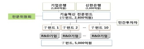 산업부는 우선 R&D 자금을 예치·관리하기 위해 산업기술자금 전담은행으로 선정된 기업은행과 신한은행이 각각 1천800억원과 1천억원을 출자해 모(母)펀드를 마련하도록 했다.