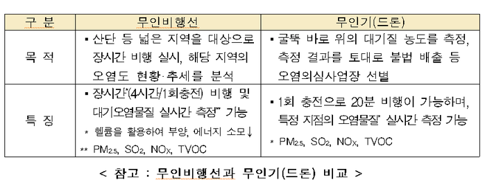 특히, 지도·점검 시 무인비행선 단독이 아닌 무인기(드론)·이동측정차량 등과 함께 활용하면 사업장의 불법 배출을 예방하는 효과가 나타난다.