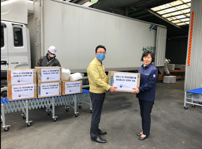 최종원 한강유역환경청장이 3월 12일 오후 현장 점검을 위해 경기 연천 소재 의료폐기물 처리업체을 방문해 관계자와 코로나19 격리의료폐기물 처리 상황에 이야기를 나누고 있다. 최 청장은 신속한 폐기물 처리와 처리 종사자의 감염예방 및 안전관리에 철저를 기해 줄것을 당부했다.