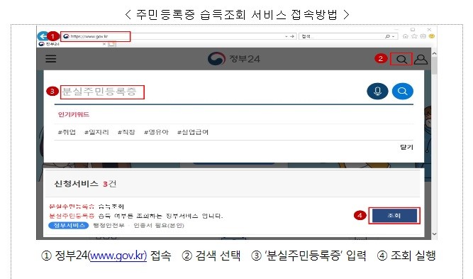이에 따라 행정안전부는 지자체에서 습득 주민등록증을 인계 받으면 즉시 시스템에 등록하여, 국민들이 정부24에서 습득여부를 바로 확인할 수 있도록 하였다.