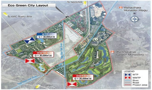 총 사업비 8590만달러가 투입되는 미얀마 에코그린시티 상하수도시설 설치 사업은 정수장 1곳과 하수처리장 2곳을 짓는 사업으로 20만 인구가 하루에 사용 가능한 4만톤의 처리가 가능하다.