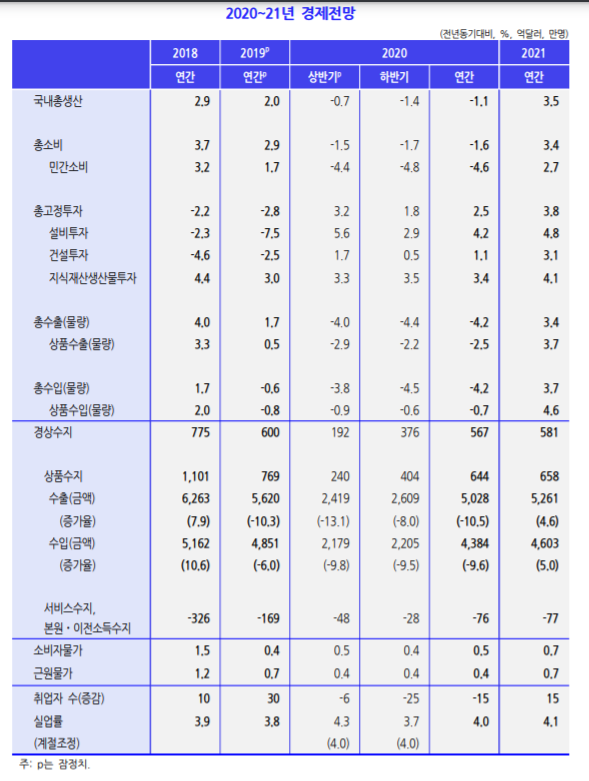 한국개발연구원(KDI)이 우리나라 경제성장률을 '올해 -1.1%, 내년 3.5%'로 전망했다.