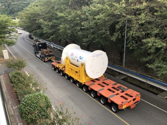 국내 최초로 사용후핵연료를 용기에 담아 도로로 운반하는 모의시험이 진행됐다.