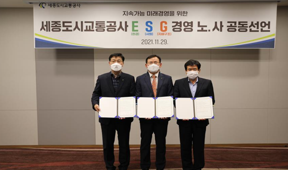 세종도시교통공사의 ESG경영전략과 실행과제 및 실천 의지를 대‧내외로 알리기 위해 마련된 이번 선포식에는 배준석 사장과 임원, 그리고 팀장급 직원 30여명이 참여해 ESG경영을 통해 선도공기업으로 발돋움하기 위한 환경의지를 다졌다.