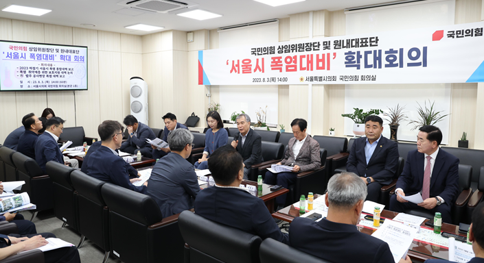 최호정 대표의원은 “여름철 폭염은 단순 무더위가 아닌, 재난안전법에 규정된 자연재난이다”며 “시민 모두의 쾌적한 일상과 건강관리를 비롯해 독거노인, 노숙인, 쪽방주민, 야외 현장 근로자 등 취약계층의 온열질환 예방과 안전관리 등 폭염 재난 대비에 만전을 기한다는 차원에서, 서울시와 관련 대책을 논의하는 자리를 마련했다”고 밝혔다.