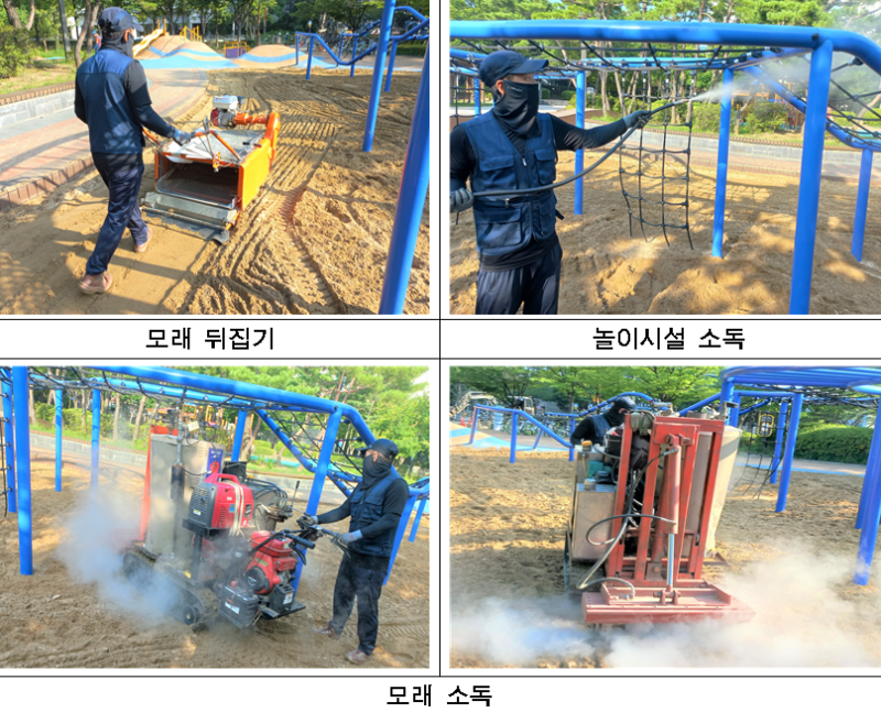 아울러 연 7회 공원 내 모래놀이터에 모래 소독을 실시하고 있다. 모래에 있는 작은 돌, 담배꽁초, 날카로운 유리 조각 등 이물질을 제거하고, 모래의 탄성을 높이기 위해 모래를 뒤집은 후, 고온의 수증기를 분사해 모래를 소독한다. 모래놀이터 내 놀이시설의 소독도 실시해 면역력이 약한 아이들이 마음껏 뛰어놀 수 있는 안전한 놀이 환경을 조성한다.