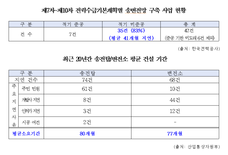 실제로 최근 20년간 송전탑·변전소 준공까지 각각 80개월, 77개월이 소요됐다. 지연 사유의 절반 이상이 주민 민원 때문이었다.