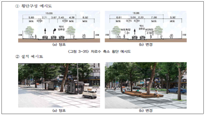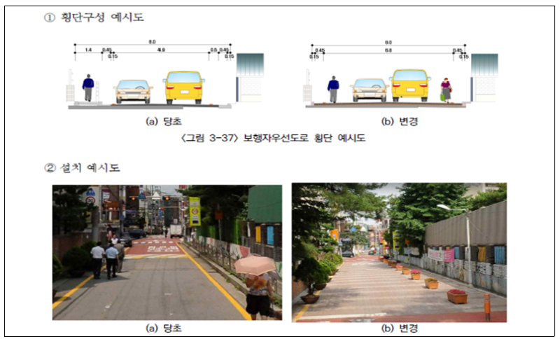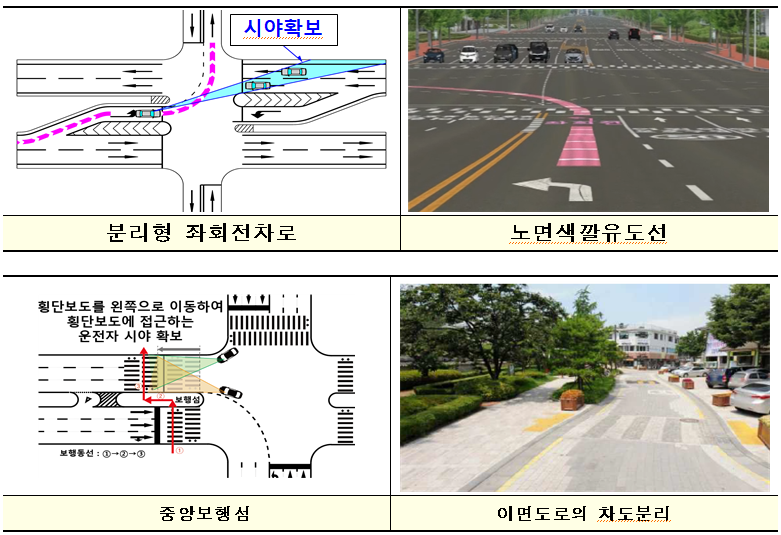 도시지역에서 제한 속도별 도로구조와 대중교통 시설, 보행자와 고령자, 장애인 등 교통약자의 안전한 통행을 위한 교차로와 횡단보도 설계 방법, 중앙보행섬 설치 방법 등을 제시하였다.