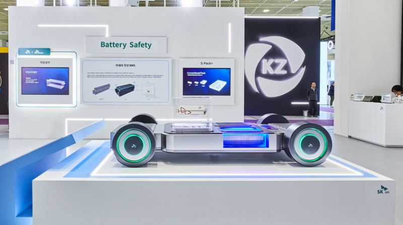 ▲ SK엔무브와 협력 개발하고 있는EV배터리용 액침냉각 기술과 함께 독자적 차세대 무선BMS(Battery Management System)도 최초로 공개했다. (사진 제공=SK온)