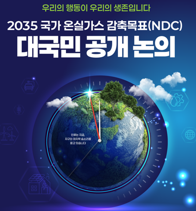 환경부(장관 김성환)는 2035년 국가 온실가스 감축목표(NDC : 파리협정 하에 각국이 제출하는 감축·적응공약 ) 설정을 위해 9월 19일부터 10월 14일까지 전 국민이 참여하는 '2035 국가 온실가스 감축목표 대국민 공개논의 토론회'를 총 7차례에 걸쳐 실시한다.