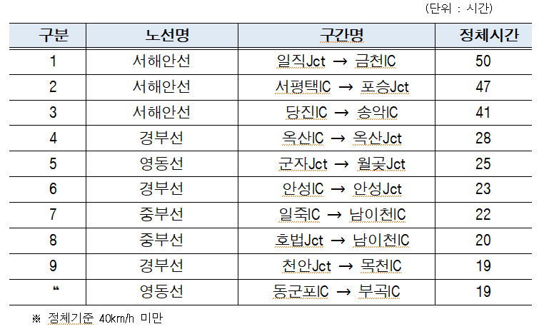 국회 국토교통위원회 소속 민홍철 의원(경남 김해갑)이 국토교통부로부터 제출받은 최근 5년간 명절 고속도로 정체 구간을 분석한 결과, 서해안선과 경부선 일부 구간이 매년 상습 정체구간으로 반복되는 것으로 나타났다.
