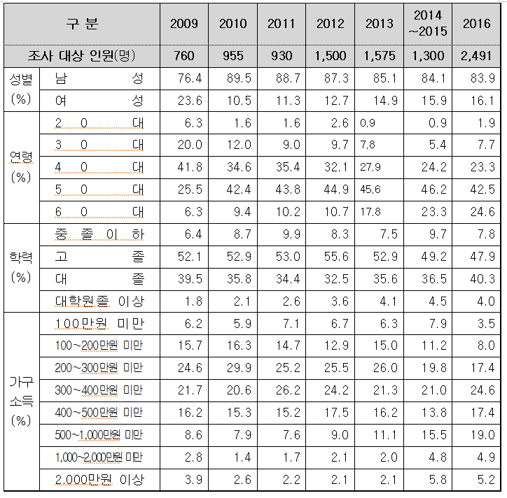 이러한 결과 역시 지난 10여년간의 조사결과와 별반 다르지 않다. 주목할 만한 것은 2023년에 비해 50대 이하의 이용자는 16%나 감소한 반면, 60대 이상은 16% 정도 증가했다는 것이다.