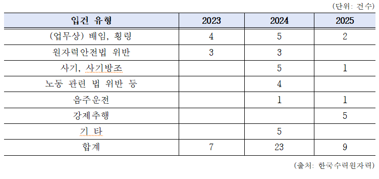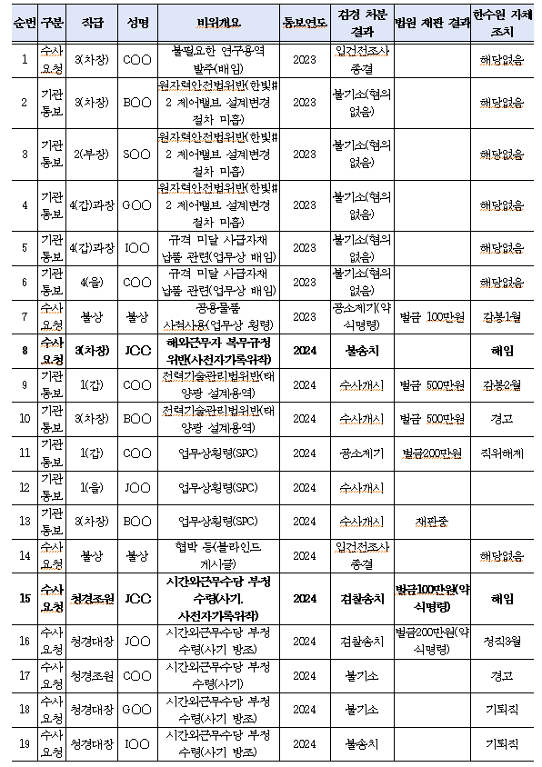 국회 산업통상자원중소벤처기업위원회 김동아 의원( 서대문갑)이 한수원으로부터 제출받은 <최근 3년 한국수력원자력 임직원 형사입건 현황> 자료에 따르면 형사입건 건수가 총 39건에 달하는 것으로 드러났다.