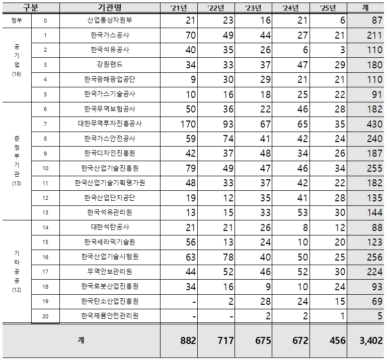 기관 유형별로 보면, 해킹 시도 탐지가 가장 많았던 공기업은 ▲한국가스공사(211건), ▲강원랜드(180건), ▲한국석유공사(110건) 순으로 나타났고, 준정부기관은 ▲대한무역투자진흥공사(KOTRA, 430건), ▲한국산업기술시험원(KTL, 256건), ▲한국산업기술진흥원(KIAT, 255건)의 순으로 집중됐다.