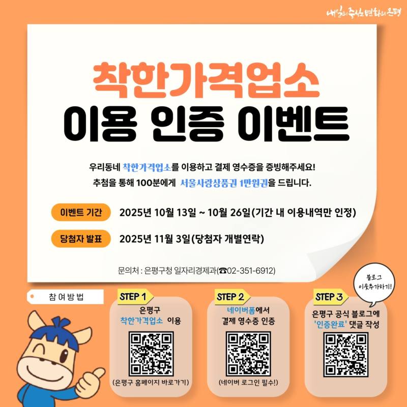 착한가격업소는 물가 안정을 위해 합리적인 가격과 양질의 서비스를 제공하는 업소다. 은평구는 이번 이벤트를 통해 주민들이 더욱 많이 이용할 수 있도록 참여형 이벤트를 마련했다.