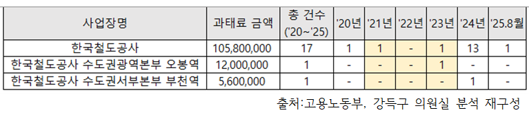 한국철도공사도 2회 이상 위반했지만 공표된 사업장명단에서 빠져