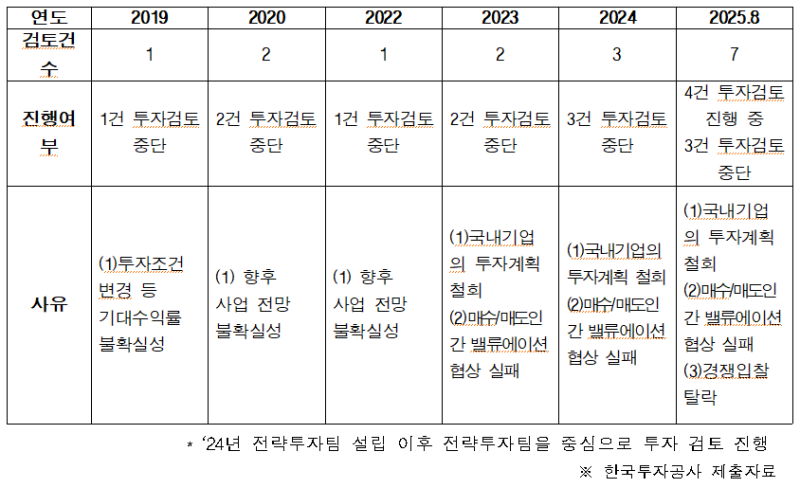 한국투자공사 해외진출 공동투자 자금, 5년간 투자검토 사업 9건 모두 무산