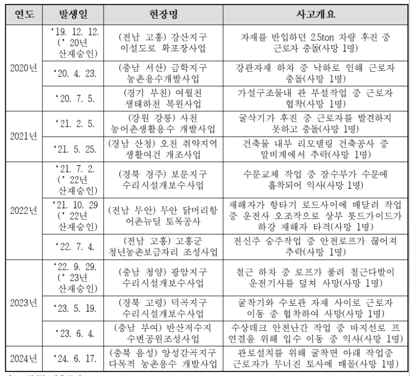 이와 관련하여 김선교 의원은 “농어촌공사의 안전사고가 끊이지 않아 적극적인 예방 노력이 필요하다”며, “철저한 안전 교육과 위험 요인 제거, 그리고 사고 발생 시 신속한 대응으로 인명 피해가 발생하지 않도록 최선을 다해야 할 것”이라고 밝혔다.