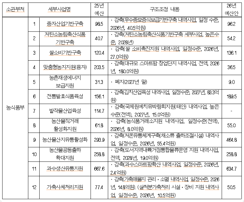 국회 농림축산식품해양수산위원회 윤준병 의원(더불어민주당, 전북특별자치도 정읍시·고창군)이 기획재정부의 ‘2025 국고보조사업 연장평가보고서’를 분석한 결과, 농림축산식품부·해양수산부·농촌진흥청, 산림청, 해양경찰청 등 국회 농해수위 소관 5개 부처의 국고보조사업에 대한 운영 및 집행 효율성이 극히 낮은 것으로 확인됐다.