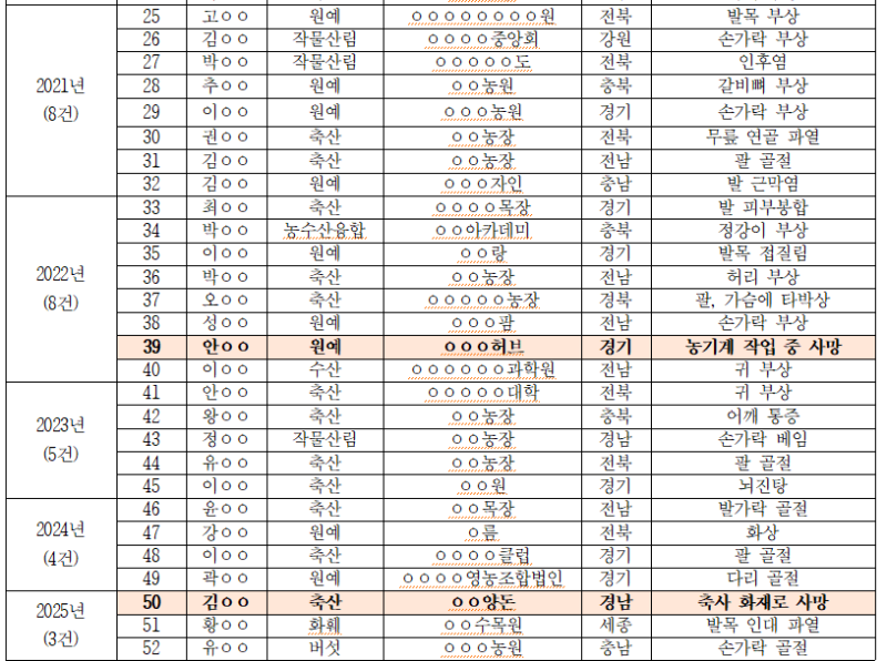 실제, 지난 5월 축산학부 소속 2학년 실습생이 경남 합천의 한 돈사에서 장기현장실습 도중 화재로 사망했고, 이에 앞서 지난 2022년 6월에도 경기 고양의 한 화훼농장에서 실습하던 실습생이 비료 배합기계에 끼여 사망하는 사건도 발생했다.