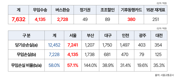 정춘생 의원이 서울교통공사로부터 제출받은 자료에 따르면, 2024년 한 해 무임수송으로 인한 손실금만 4,135억 원에 달했다. 여기에 기후동행카드 등 공익서비스가 확대되면서 향후 적자는 더욱 커질 전망이다.