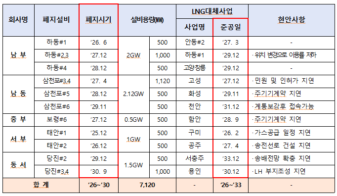 이로 인해 발전소 폐지 시점과 대체발전소 준공일이 최대 3년까지 벌어져 막대한 적자가 예상될 뿐만 아니라, 대체발전소의 이용률에 대한 검토 없이 주먹구구식 계획이 추진되고 있었다.