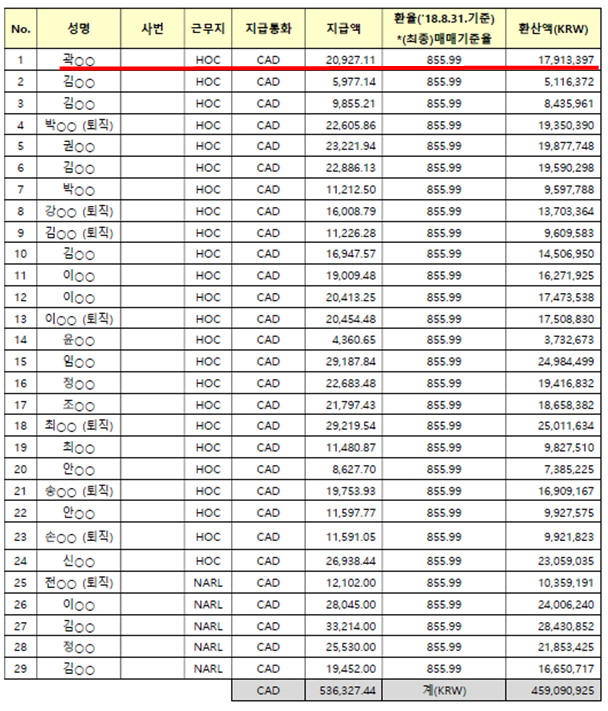 해당 제도에 따라 29명의 파견직원이 약 4억 6천만원(약 53만 6,327만 캐나다 달러‧ `18.8.31. 환율기준)의 혈세를 부당하게 수령했다.